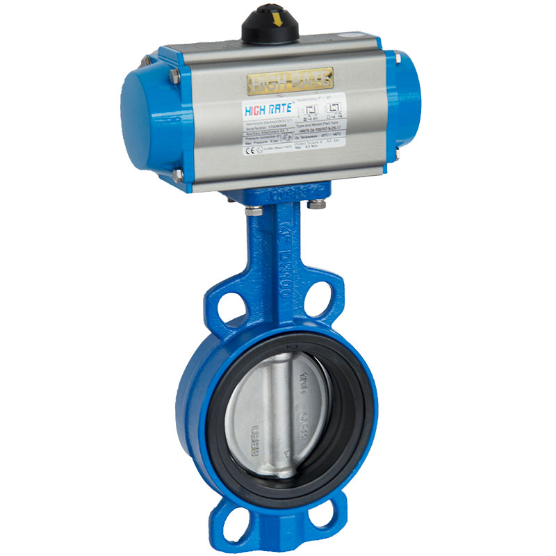 HIGHRATE氣動對夾蝶閥具有結構簡潔,流阻系數小,流量特性趨于直線,不會滯留雜物。且重量輕,安裝方便,驅動扭矩較小的優點。